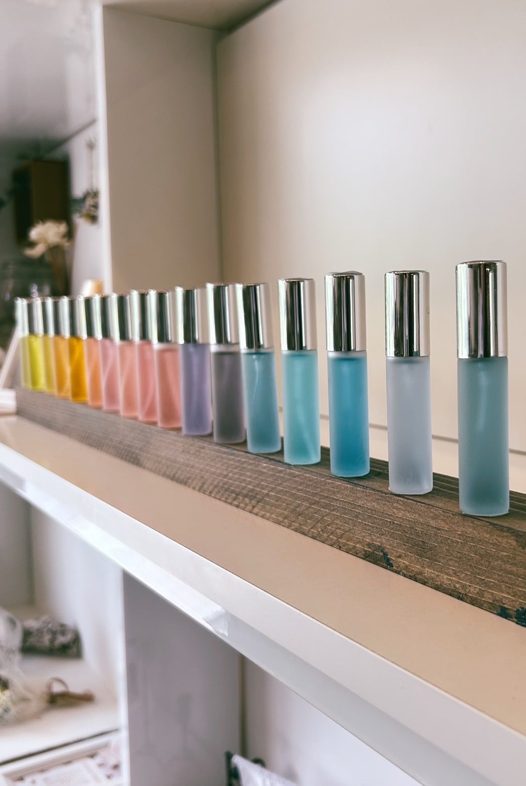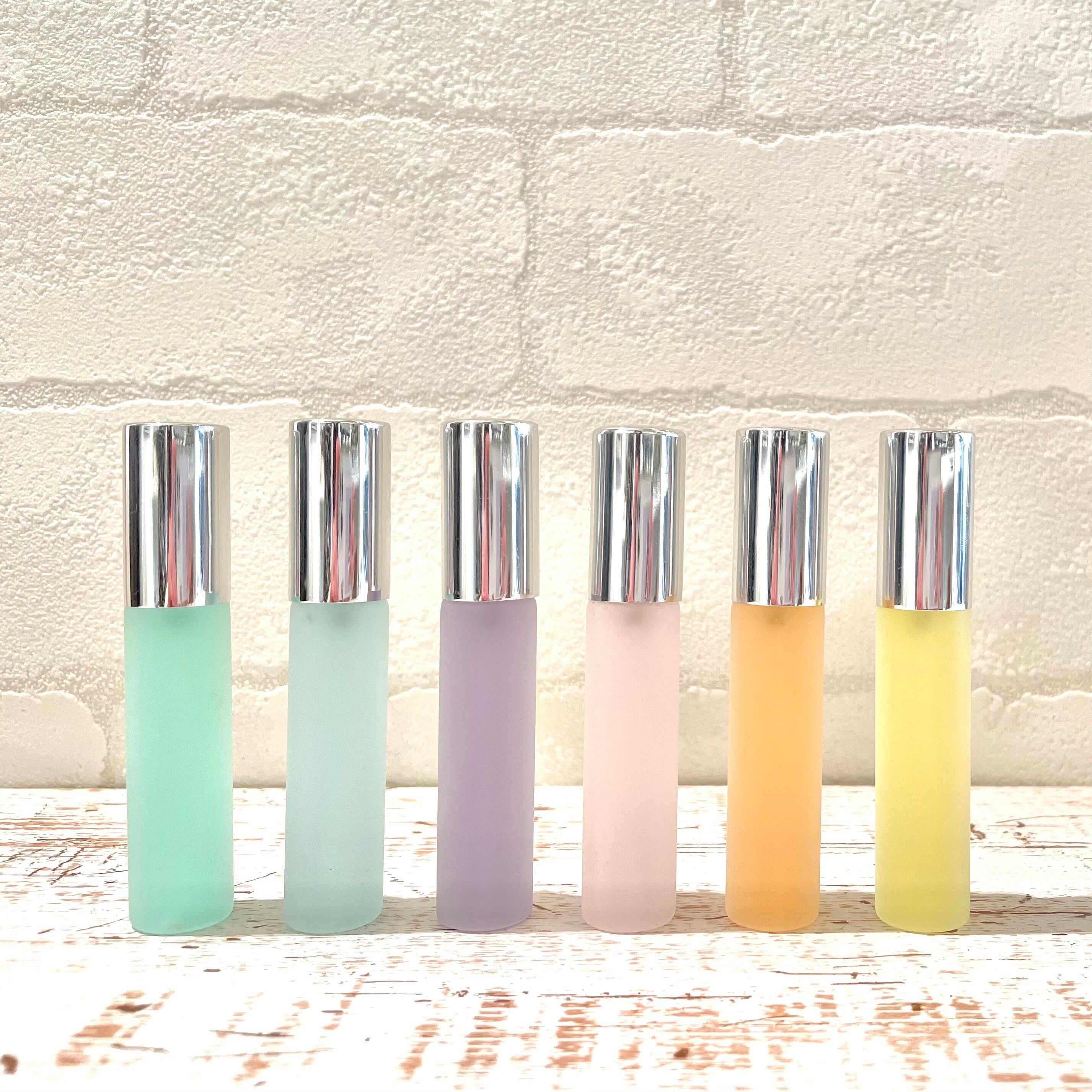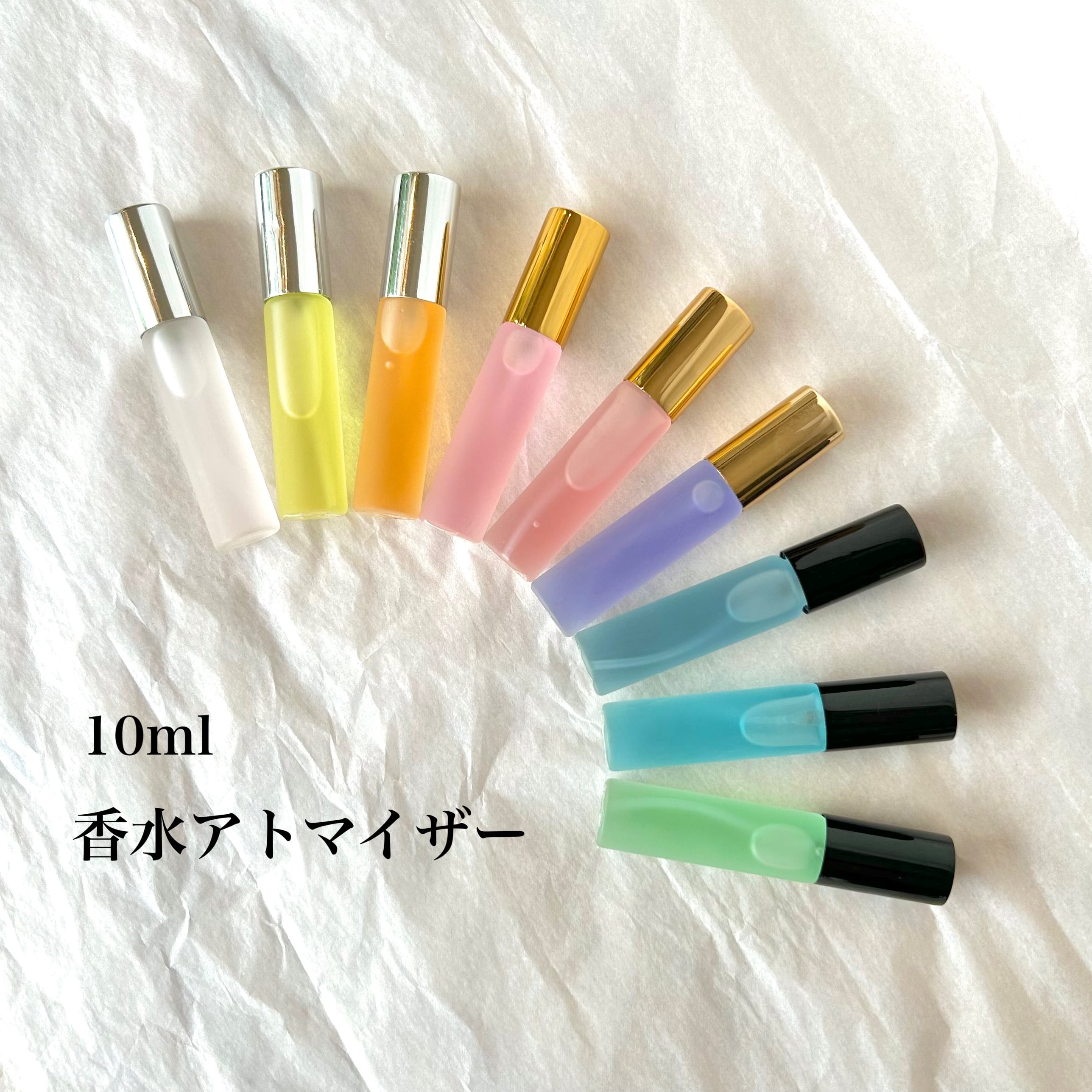 手作り香水の容器として人気のスプレータイプのアトマイザーです。10mlサイズとコンパクトでポーチなどにも入れやすく、女性に人気です。材質はガラス製。透明度の良いつや消しボトルに、シルバー、ゴールド、ブラックのキャップがスタイリッシュなデザインとなっています。中身が透き通って見えますので、色づけして楽しむこともできます。
